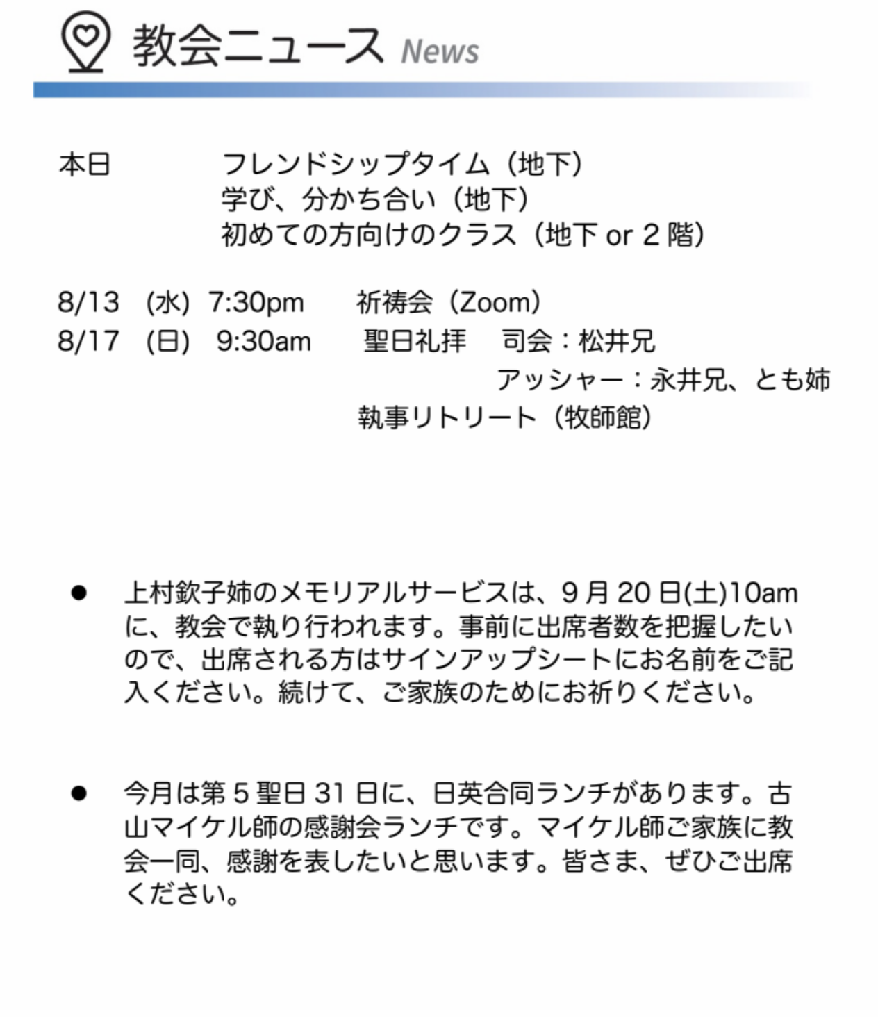 08/31/2025 LAHC 教会ニュース